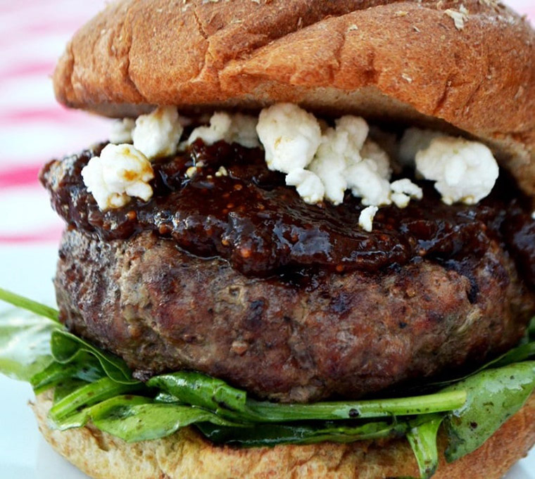 Jennifer Daskevich, Sandwich america Goat Cheese Stuffed Aussie Grassfed Burgers with Fig Jam and Fresh Spinach