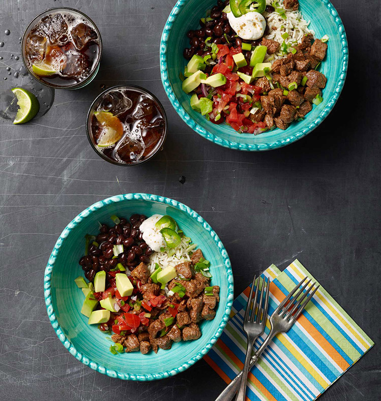 chef Adam Moore Grassfed beef bowl-ito with cilantro rice