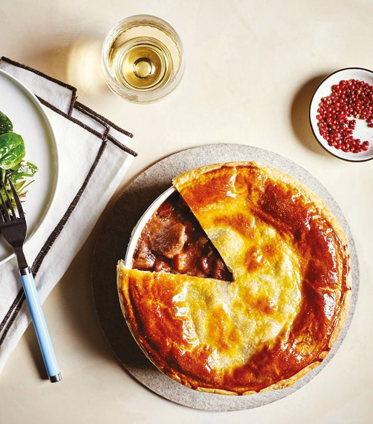 Cover, reduce heat to low and simmer for 2 hours or until the meat is tender. Add more water if necessary. Once mixture has cooled, cover in baking dish with puff pastry lid and bake in oven until pastry is golden brown.