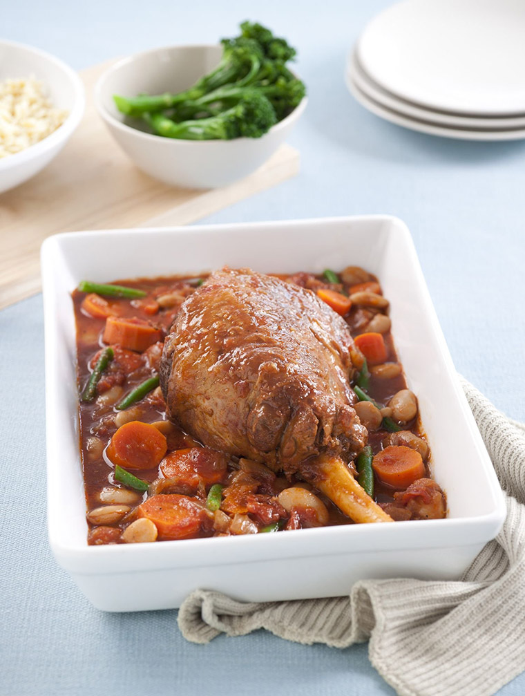Add the remaining ingredients and cook another 30 minutes or until the vegetables are cooked and the meat is tender. Serve with risoni and steamed vegetables.