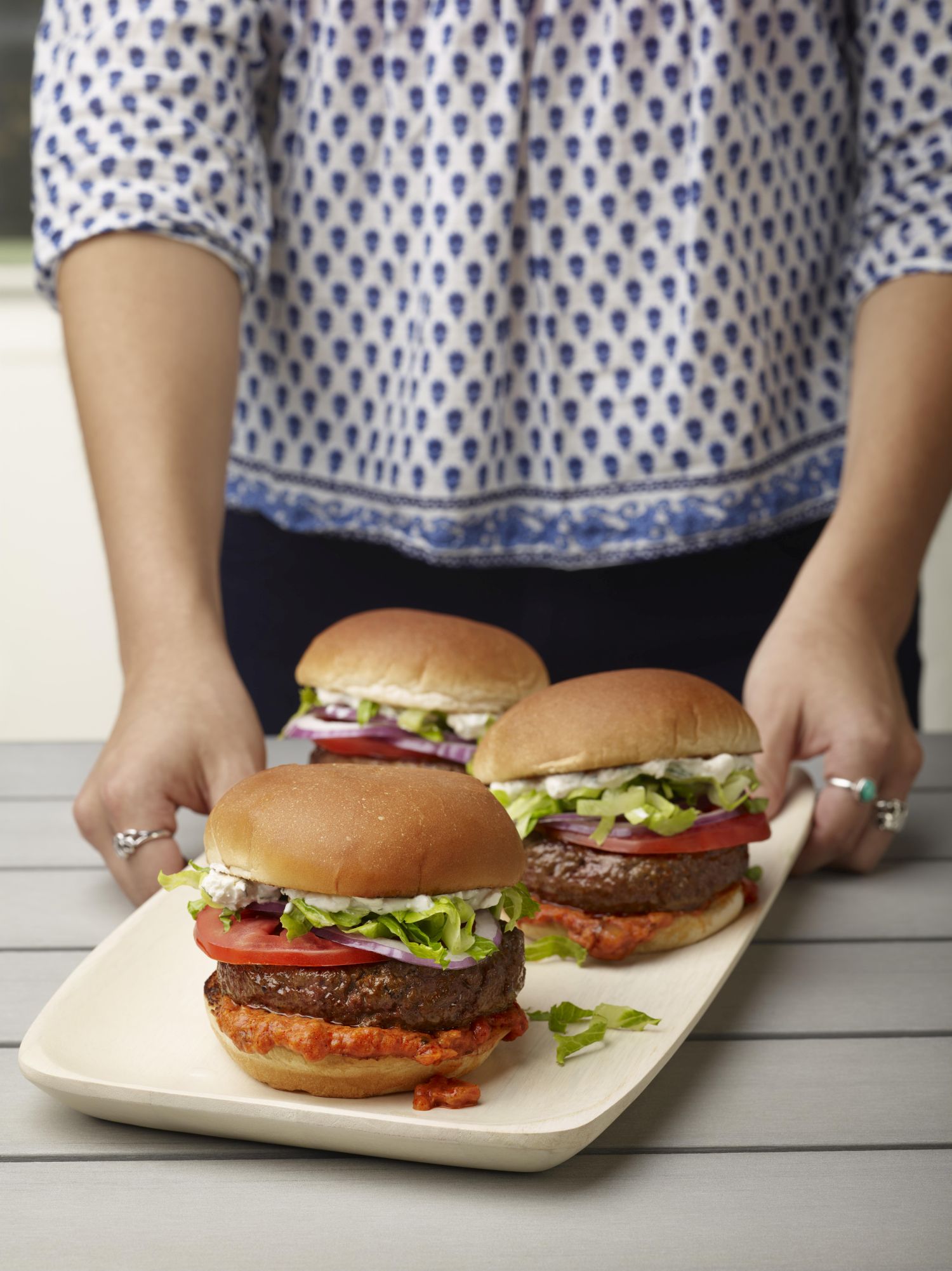 For a low-carb option, replace the buns with lettuce and keep the beef ground instead of forming patties.